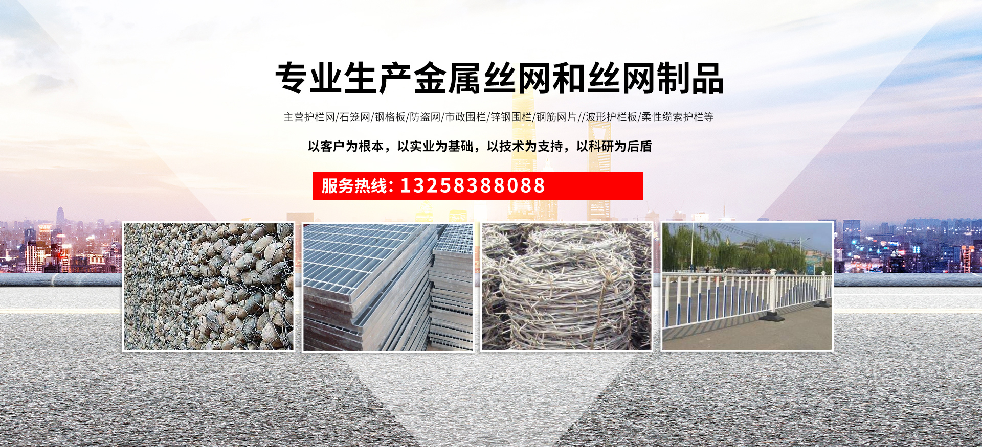 成都宏旭金屬絲網(wǎng)制造有限公司主營護(hù)欄網(wǎng)系列、石籠網(wǎng)系列、鋼格板、防盜網(wǎng)、市政圍欄、鋅鋼圍欄、鋼筋網(wǎng)片、聲屏障系列、波形護(hù)欄板、柔性纜索護(hù)欄、SNS邊坡防護(hù)網(wǎng)等其他絲網(wǎng)類產(chǎn)品。特殊規(guī)格可加工定做,也可根據(jù)客戶來圖來樣定做。自創(chuàng)業(yè)以來,公司一直堅(jiān)持市場為導(dǎo)向,以客戶為根本,以實(shí)業(yè)為基礎(chǔ),以技術(shù)為支持,以科研為后盾,集科研、生產(chǎn)、經(jīng)營為一體,不斷研制開發(fā)新產(chǎn)品,開拓市場,走綜合發(fā)展之路。多年來,公司憑借過硬的質(zhì)量,良好的信譽(yù)、優(yōu)質(zhì)的服務(wù)、合理的價(jià)格,贏得了市場和商家的一致好評(píng)。